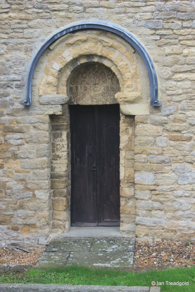 The two windows are unusually in ironstone which provides a nice contrast to the limestone rubble of the walls. Each is three stepped cinquefoiled lights under a four-centred arch. The priest’s door is under a plain arch and the restored square headed low-side window has a single trefoiled light under an ogee head.